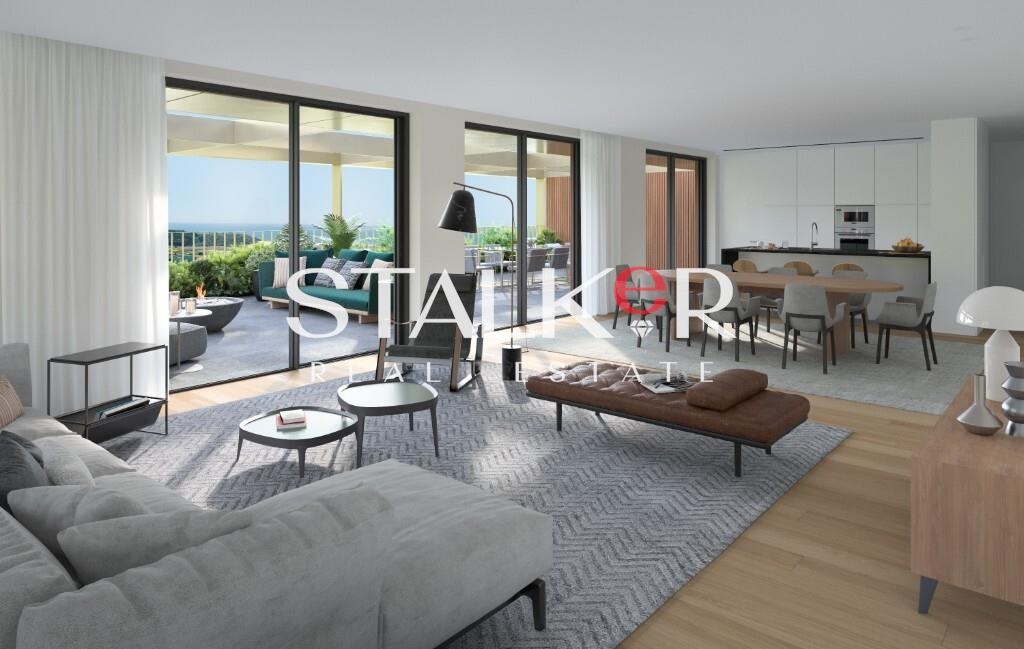 Com generosa área de 181,2 m², vista desafogada num amplo terraço com jacuzzi de 82,4 m², 4 quartos, incluindo duas suítes, 2 lugares de garagem e 1 arrumo, este apartamento foi projetado para lhe proporcionar conforto e uma elegância incomparáveis.